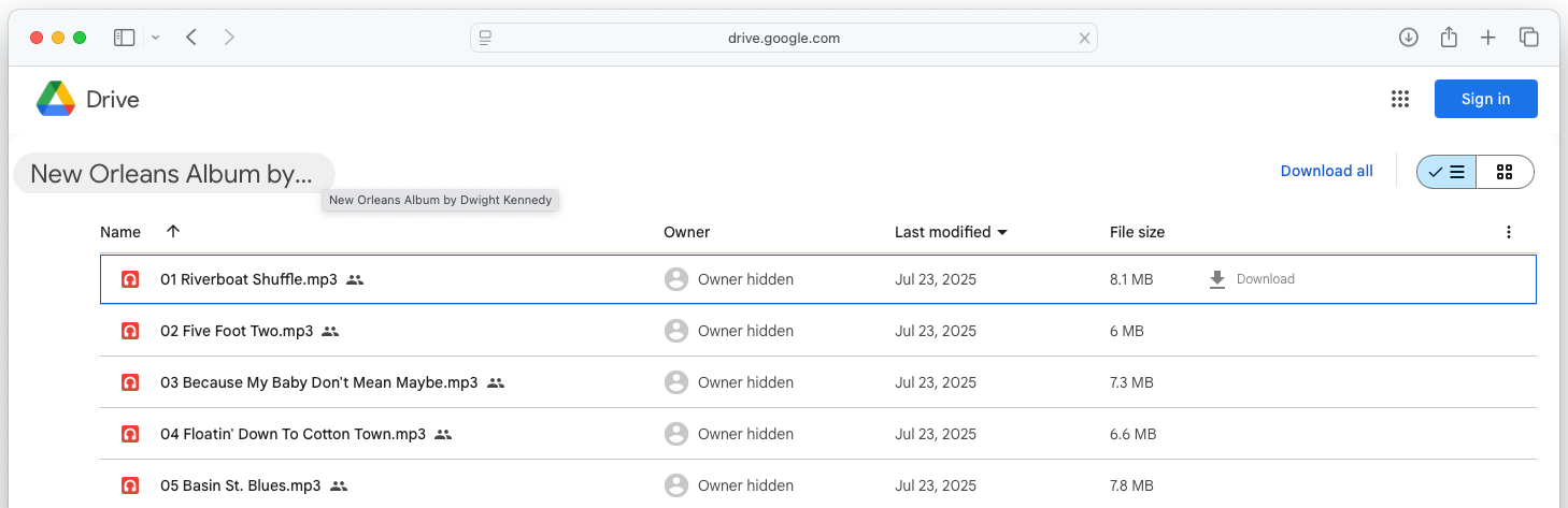 Once located, open the file, and the album cover will appear with a download link at the bottom labeled as “Download Album”